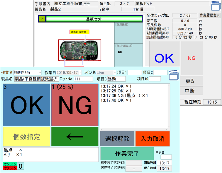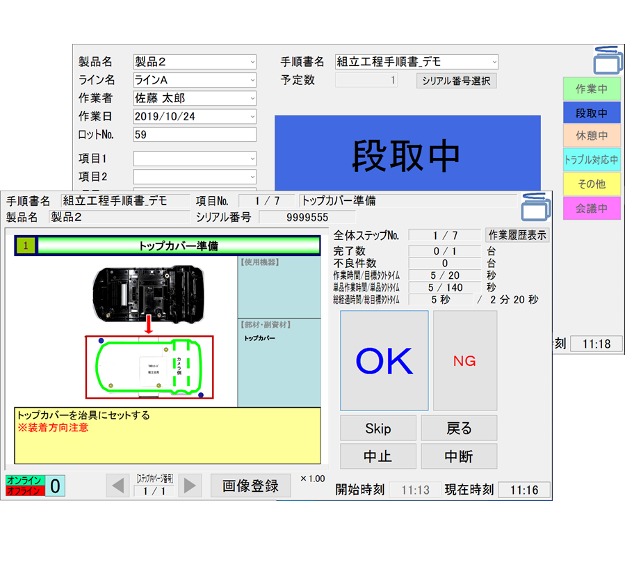手順毎の作業時間と作業結果をリアルタイムに収集・集計。