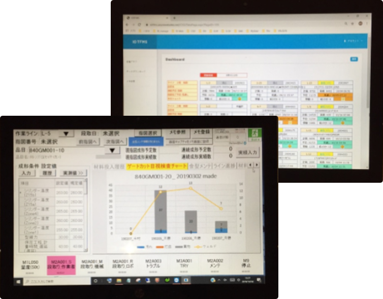 タブレット・コミュニケーターを導入し、入力作業・不良発生・設備稼働状況を可視化。その結果、大きな効果を実現しました。
