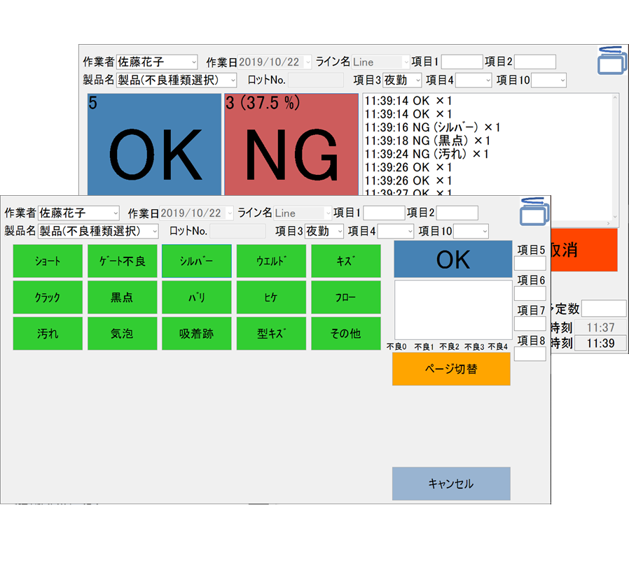 作業時間と検査結果を、リアルタイムに収集・集計。